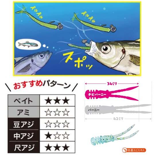 一度使うとついつい頼ってしまう程の釣れすぎ注意!イチコロサイズとなっている。