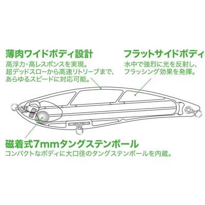 広範囲から魚を呼ぶパワーを持ちながら、違和感なくバイトに持ち込むコンパクトな95ミリサイズに設定。