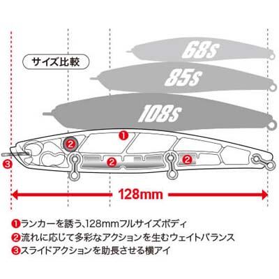 流れを巧みに操り、独自の“シークスライド”アクションで狡猾なランカーシーバスの狩猟本能を刺激しバイトに持ち込む。