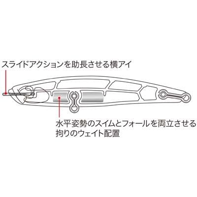 水平姿勢スイムに拘り、横方向の動きの純度を高めた事で、潮流変化による不意なスライドアクション「シークスライド」がシーバスの捕食本能に直撃しバイトへと持ち込む。