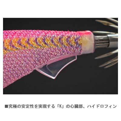 「エギ王 K」は、どんなにタフハイプレッシャーなコンディションでも釣果を出せるよう「低活性イカ攻略モデル」として開発されたエギである。究極の安定性を実現する「K」の心臓部、ハイドロフィンにより、フォール時の「ブレ」を徹底的に排除する。