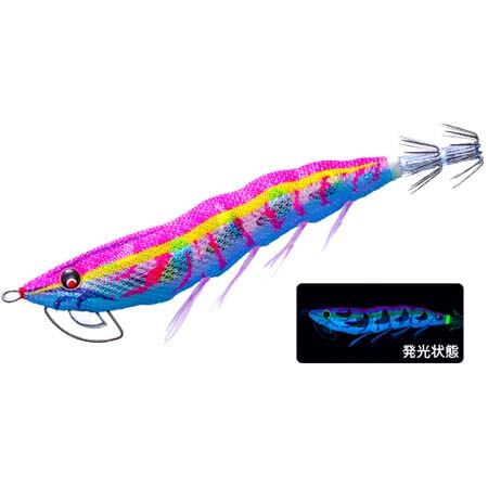 ブルー夜光ボディ。イカへのアピールとアングラーからの視認性に優れるピンク、すみ潮やスレたイカに効果を発揮するブルー、状況を選ばないマーブル下地。大人気カラーが待望の復刻