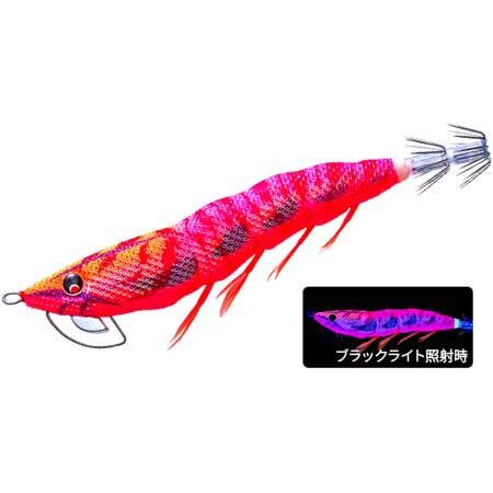紫外線発色ボディ。紫外線発光しつつシルエットがハッキリ出るネオンフラッシュレッドボディ採用。曇天で紫外線が弱くなった状況でもシルエット効果がプラスされる事により、イカを寄せるパワー増加