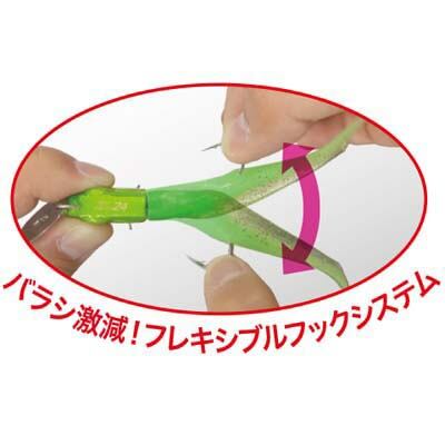 シングルフックが自由に可動する“フレキシブルフックシステム”(PAT.P)の採用により、魚の暴れに追従しフックアウトを抑制。トレブルフックとのダブルフッキングにも貢献し、高いキャッチ率を実現。