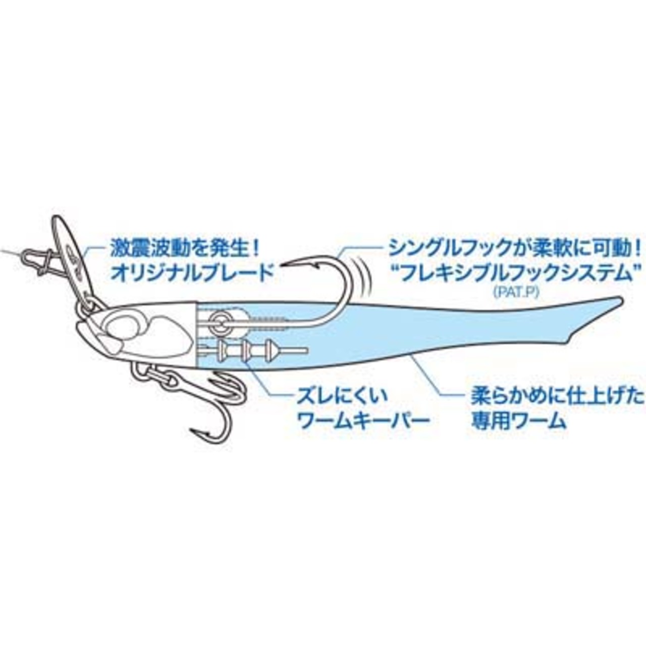 シングルフックが自由に可動する“フレキシブルフックシステム”(PAT.P)の採用により、魚の暴れに追従しフックアウトを抑制。トレブルフックとのダブルフッキングにも貢献し、高いキャッチ率を実現。