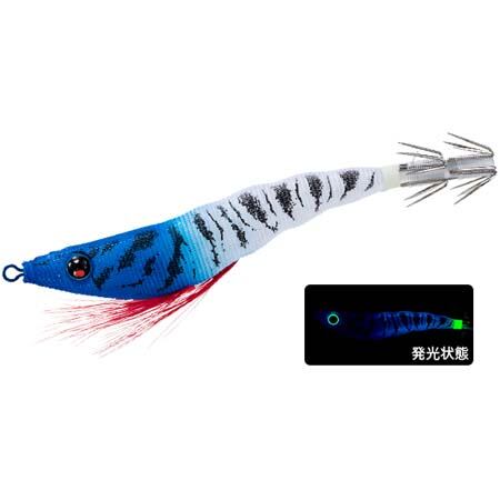 ブルー夜光ボディ。イカには最も視認しやすいブルー夜光ボディのコントラストカラー。発光色はブルーグリーン。