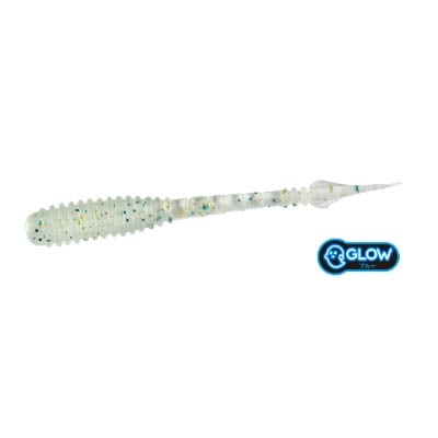 ボディの途中からテールに向かって細くなり、ボディ後部にはシェイプを作ることにより、よく曲がる様になっている。この形状によりアジが吸い込みやすく、フッキングが抜群に決まりやすい。さらに、テール部サイドの小さなフィンは、動かしたい時には動き、喰わせのステイ時には止まるアクションも!