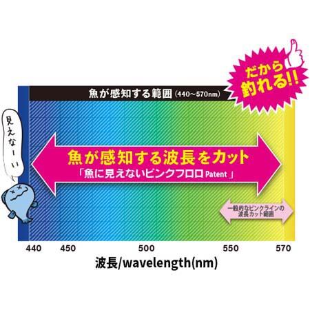 人の目にはピンクの色のままで見やすく魚に対しては独自のカラーフィルター効果で見えないラインを実現。特にスレた魚や大物に対して絶大な効果を発揮し、あらゆる魚種に対して釣果アップ。