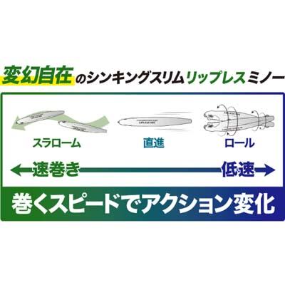 リーリング速度を上げていくとスラロームアクションに移行し、ミディアムリトリーブではI字系として使用も可能となっている。