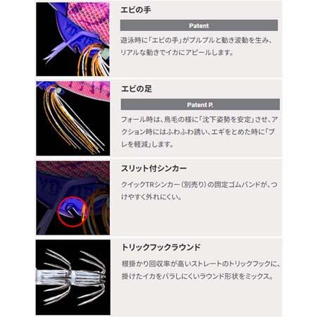 ●エビの手…遊泳時に、エビの手がプルプルと動き波動を生み、リアルな動きでイカにアピール