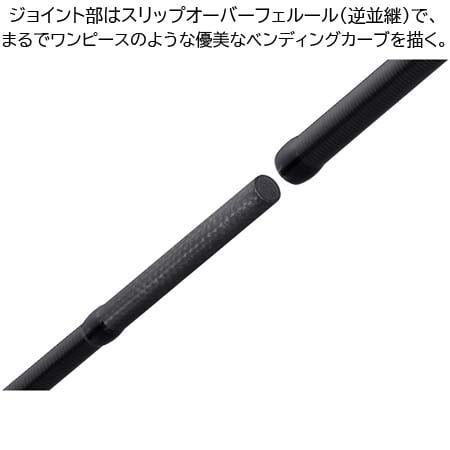 ステンレスフレームSiCリングガイド。ジョイント部はスリップオーバーフェルール(逆並継)で、まるでワンピースのような優美なベンディングカーブを描く。オリジナルカーボンリールシート「OP-02」をダウンロック方式で採用。高感度・軽量化を実現し繊細なエギの操作を可能に。高強度・耐食性に優れるEVAのセパレートグリップを採用。軽量化を実現し操作性がアップ。