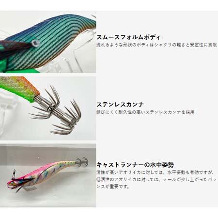 高いダート性能を生み出すアップアイ構造と、イカが好む安定したフリーフォール姿勢を徹底追求。
