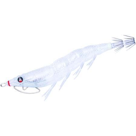 無彩色の布+クリアーボディは光が当たると常に周囲よりも1段階明るい色を一定で反射する。遠くからはイカからの視認性に優れ、近くに寄るにしたがって透け感が増加してナチュラルさが上昇していく。究極の透明系カラーは他カラーとは一味違うロジックで釣果を叩き出す