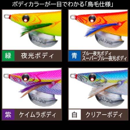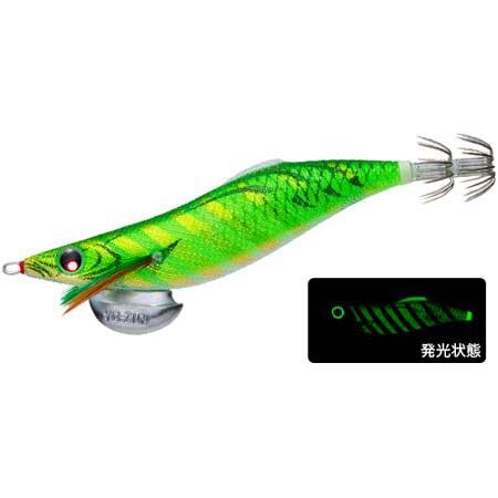 夜光ボディ。夜光とグリーン系の相性は抜群。アピールボディながらアオリイカの好む色調は喰わせ性能も合わせ持つ。