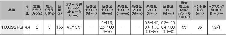 糸巻量ナイロン(lb-m):2-115,2.5-100,3-70