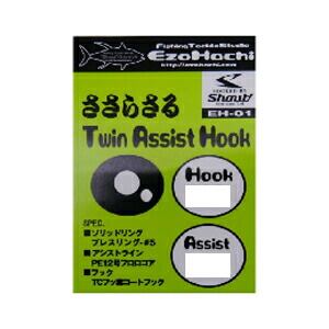 ハイピッチでの上げで喰わせる場合は上のみ、スローピッチでフォールで喰わせる場合は上下に同サイズのフックをセット。